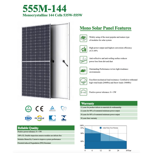 550W Bifacial PERC P Type Mono Solar Panel Double Glass